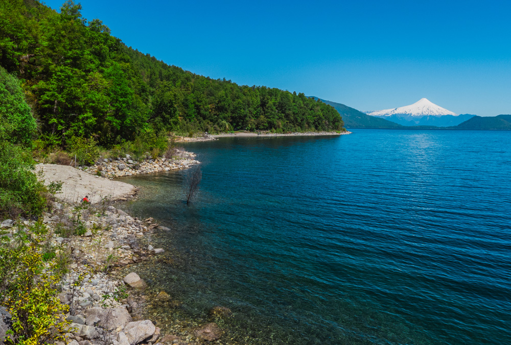 Venta de terrenos a orillas del lago Caburgua, con una vista imponente al volcán Villarrica e inmerso en el bosque nativo de la Araucanía.